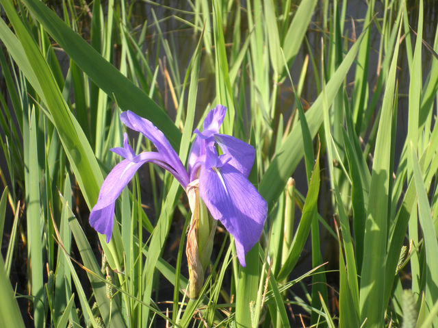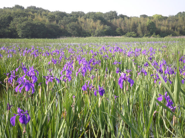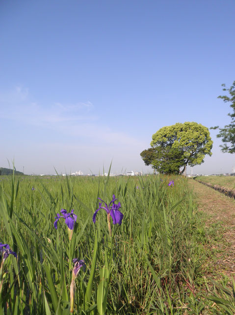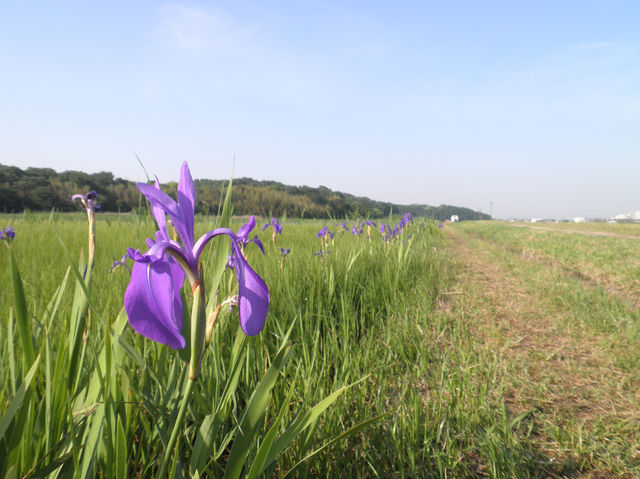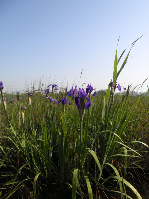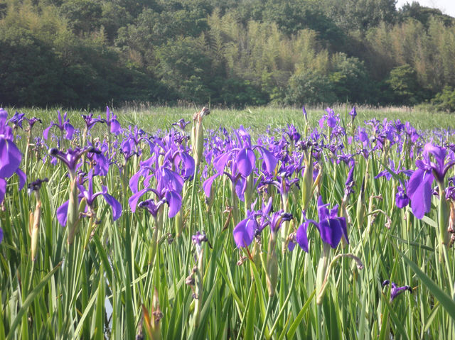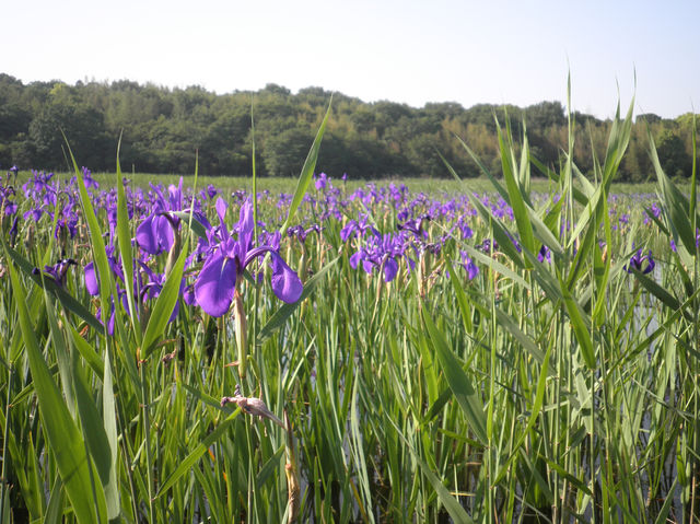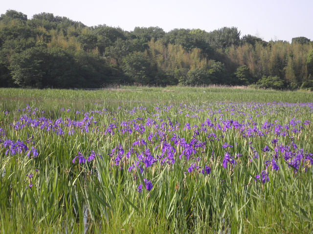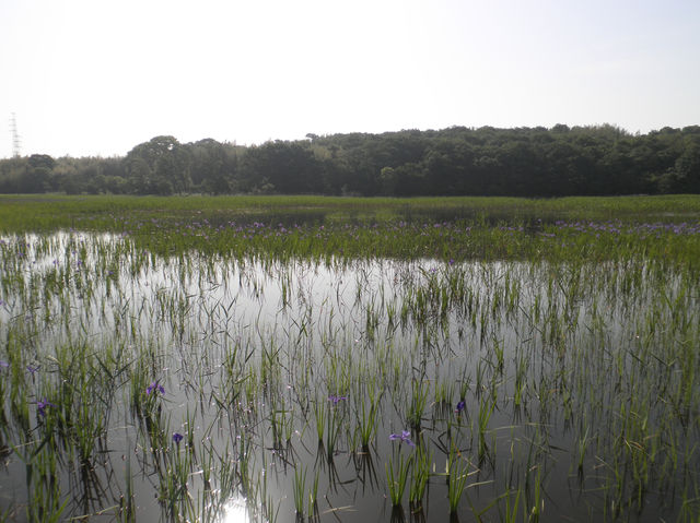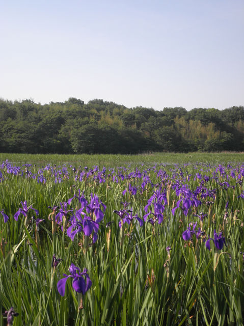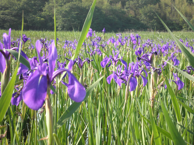 こちらは、日本三大かきつばた自生地のひとつ…(他は京都と鳥取)ということですが、なにぶん、自生地 ですので、田んぼと森に挟まれた池…というか沼。もちろん光琳みたいな橋もありませんw一応見に来る人のために看板やテントがぽつぽつ置いてあったりしましたが、朝早くて誰もいませんでしたw