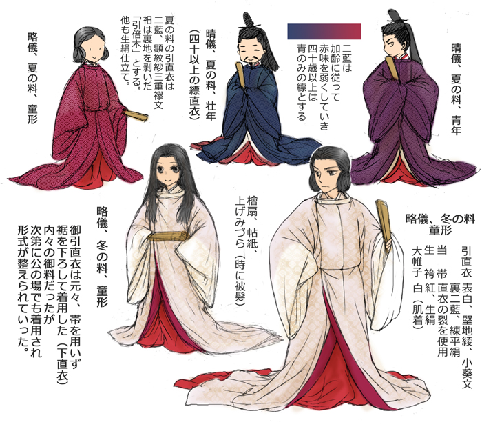 なお裘代は参内用の装束で、俗人の宿装束(とのいしょうぞく)にあたります。衣冠や冠直衣などです。