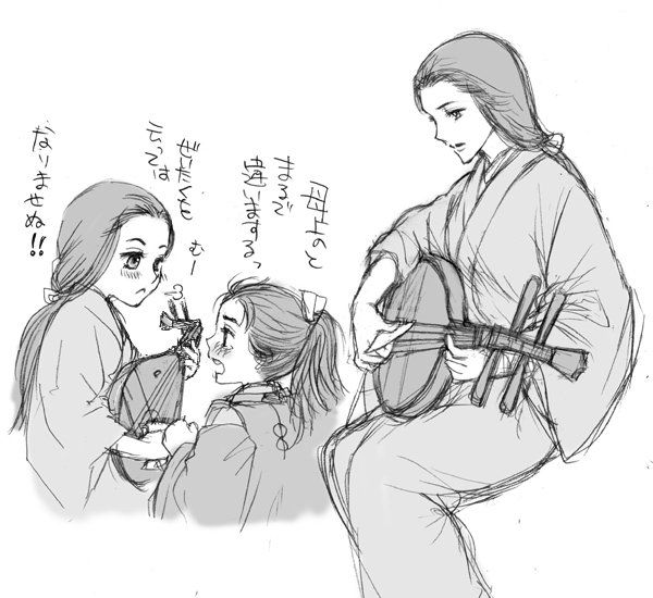 おまけ。大河で、時子が母上危篤で泣いてるちび重盛さん達を琵琶を弾いて慰めてあけようとするも、いかんせんへただった…。の図。