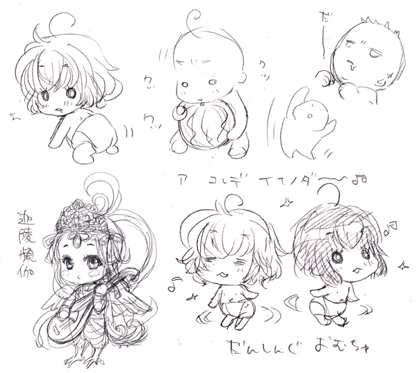 ちょっと弱ってたときに書いた赤さん達と最近書いた迦陵瀕伽の落書きです。