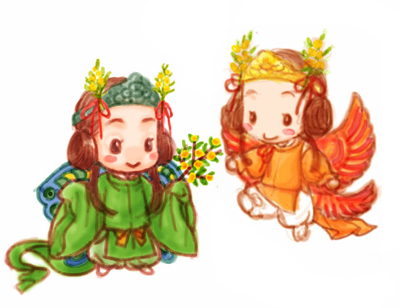 晴装束の方は後宮に伺候する童女(女孺)の正装です。