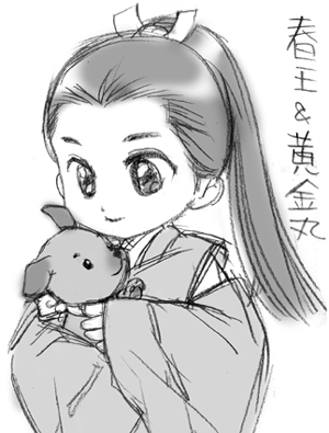 もう幼少時の義満(春王)と飼い犬の黄金丸が