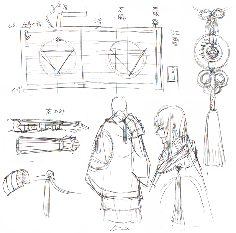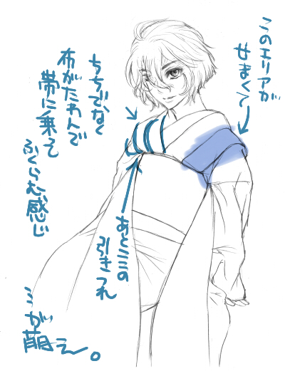 巻いたぶん袖の折り目がずれて、袖括りの露結びもちょっとずれるのとか、後ろ身頃が引き攣れてるのが萌えます。