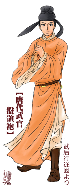 北魏の初め、胡服である盤領袍衫(円領、団領とも)が百官の常服・朝服に定められた。再び中原の覇権が漢人に戻った後も、隋ではこの制を改めなかった。煬帝(569~618)は外征の際、従う臣下に胡服を着させたという。