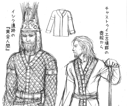 古墳時代の日本・朝鮮半島の装束の一例(想像図)
