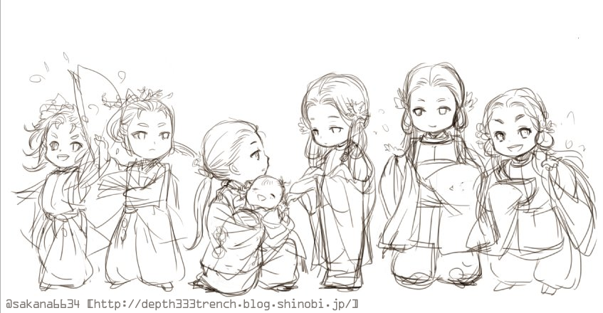 Twitterのヘッダー画像にするつもりだったので、最初から横長の構図で、ちびキャラで描き出してました。
